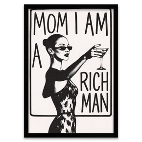 Embody the spirit of self-reliance with this striking black and white graphic print. The artwork features a glamorous woman raising a glass, paired with the famous, empowering declaration made famous by Cher.