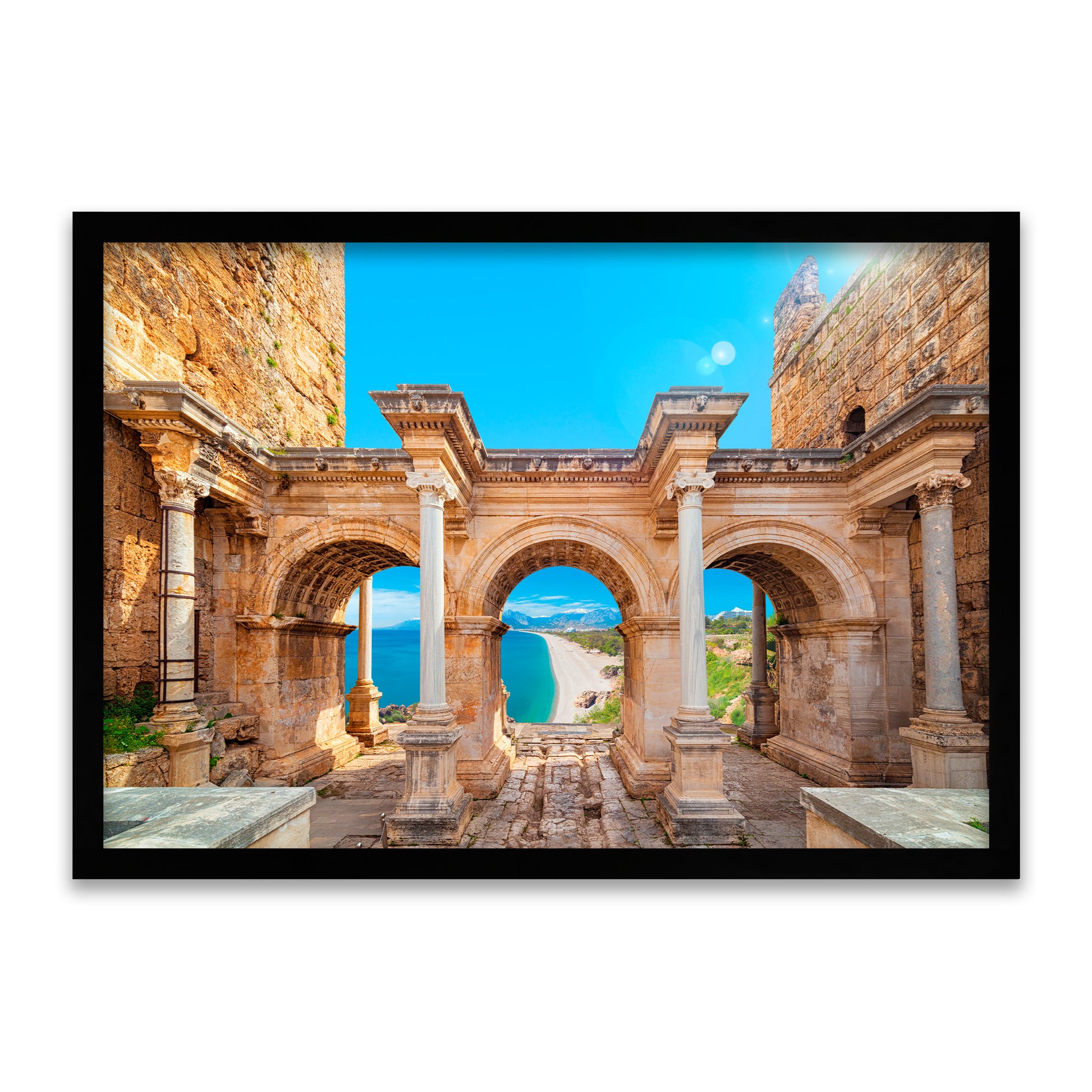 Dein persönliches Tor zum Paradies. Dieser umwerfende Kunstdruck rahmt einen perfekten, türkisfarbenen Meerblick durch die zeitlose Schönheit antiker Ruinen ein.