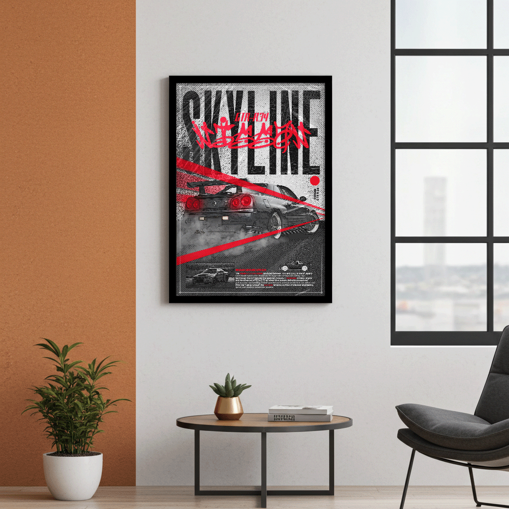 Zolle einer echten JDM-Legende Tribut! Dieser knallharte GTR R34 Kunstdruck bringt die rohe Energie der japanischen Autokultur direkt in deine Garage oder dein Wohnzimmer.