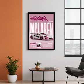 Dieser Kunstdruck ist ein Muss für jeden Auto-Enthusiasten und zeigt den unglaublichen McLaren Senna in einem auffälligen pink-weißen Thema. Der moderne, grafische Stil mit dem Graffiti-ähnlichen Schriftzug macht dieses Wandbild zu einem echten Hingucker.