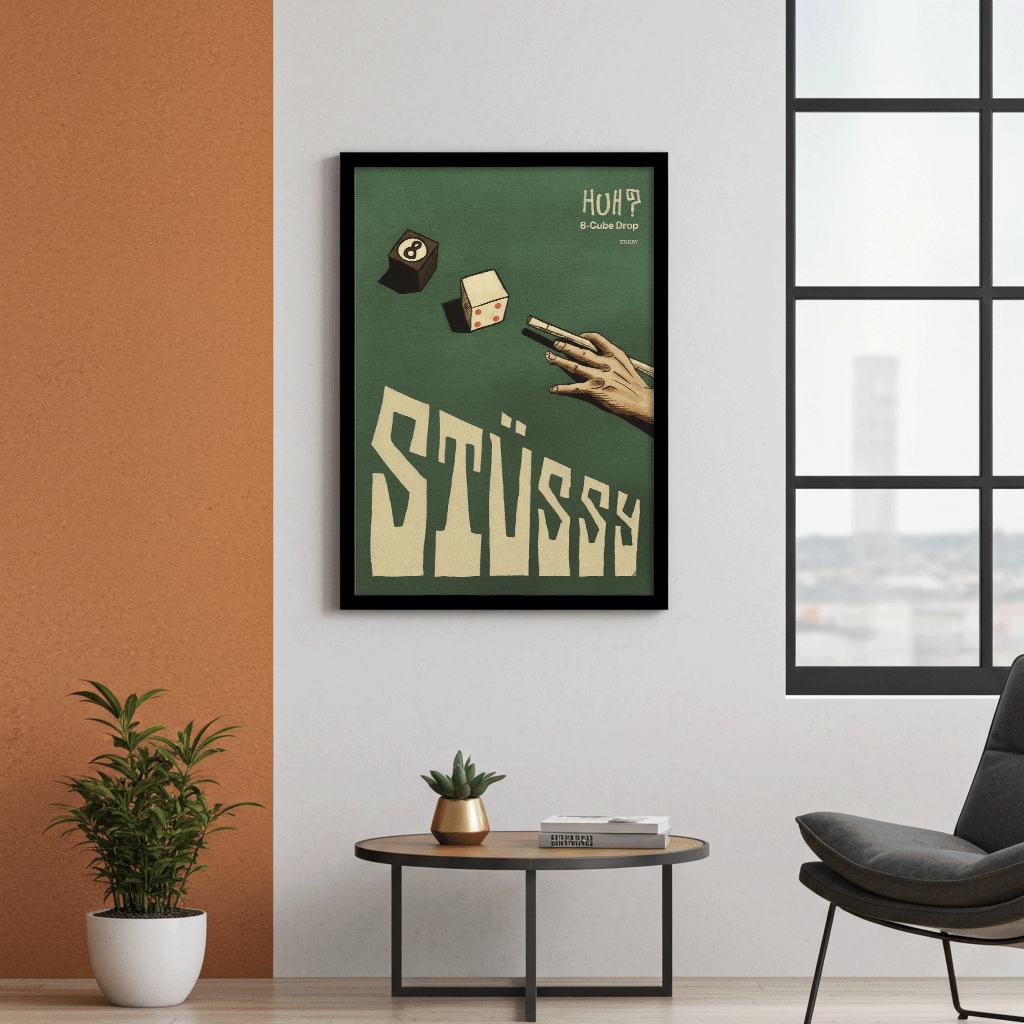 Dieses Wandbild fängt die Essenz der 90er-Jahre Strassenkultur und des lässigen Spielens mit einem surrealen Twist ein. Es eignet sich perfekt als entspannter Blickfang in einem Spielzimmer, Hobbyraum oder modernen Wohnbereich. Gedruckt auf hochwertigem Papier, sorgt dieses Poster dafür, dass die Vintage-Texturen und die kühne Typografie mit aussergewöhnlicher Qualität dargestellt werden.